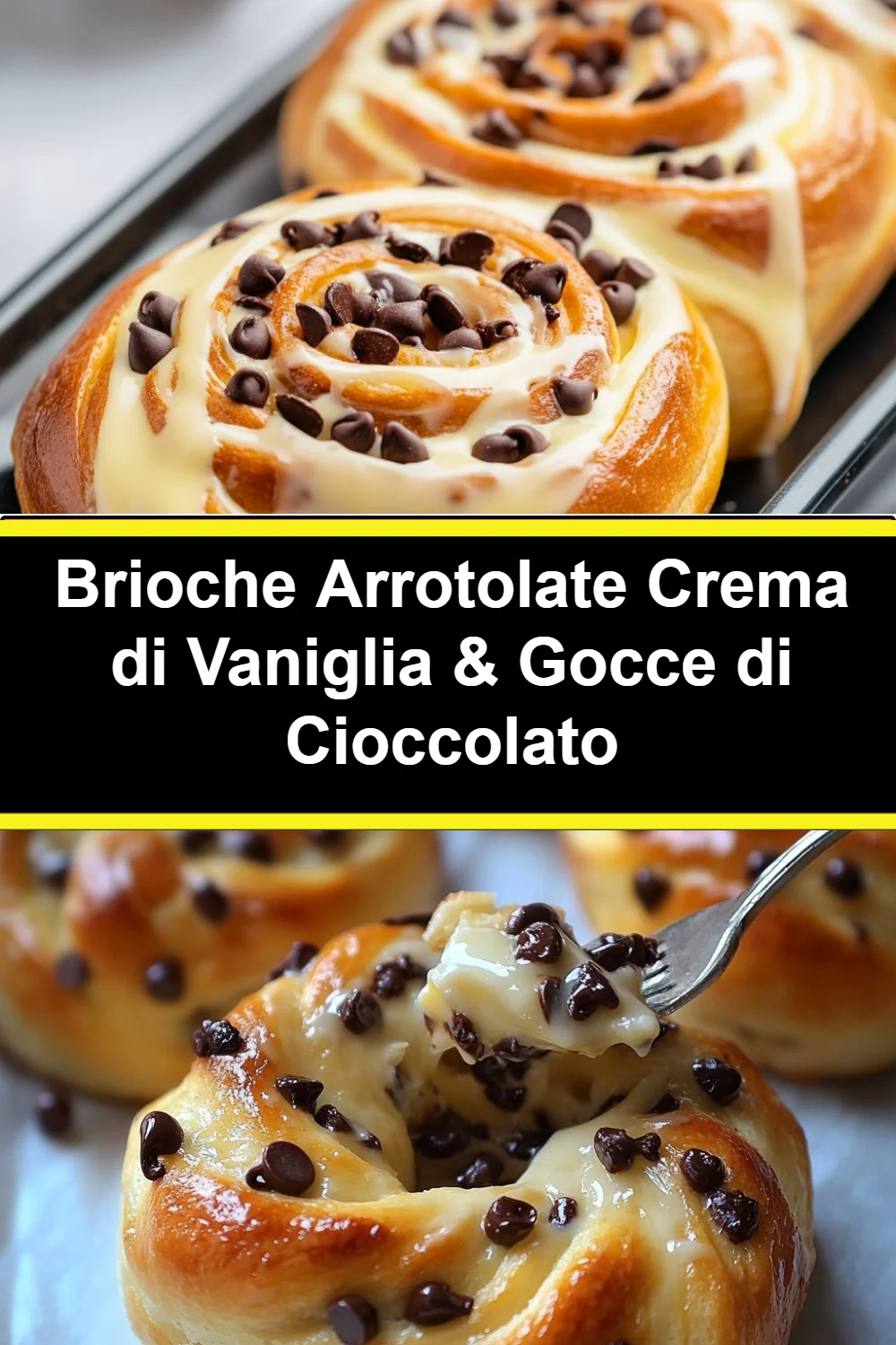 Brioche Arrotolate con Crema di Vaniglia e Gocce di Cioccolato appena sfornata