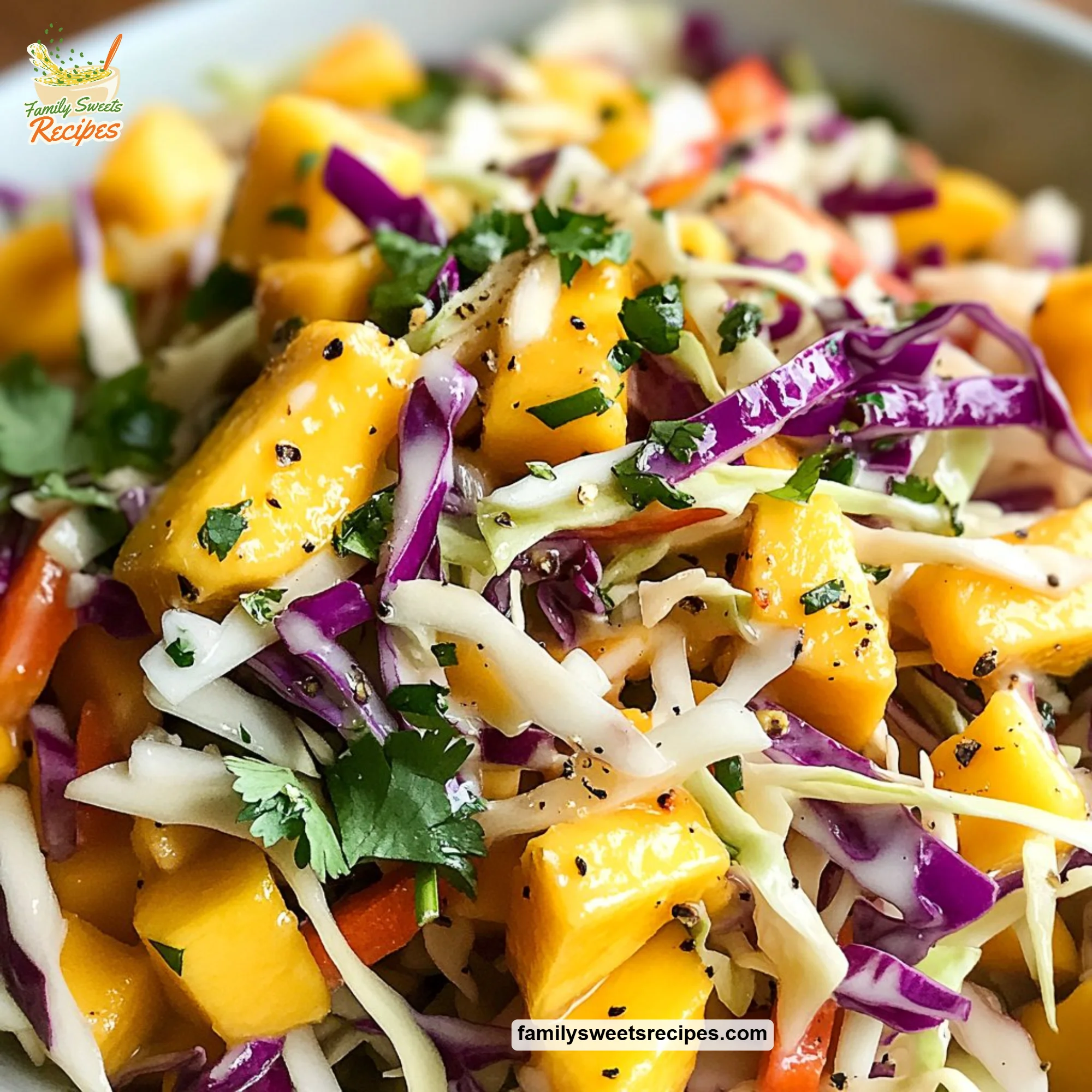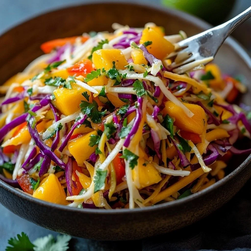 Grazie per aver trascorso questo tempo con me in cucina. Se cerchi ispirazione per abbinare l’insalata a piatti di pesce, prova la versione suggerita su Mango Slaw – perfect for fish tacos Recipe – Rachel Cooks® per idee semplici da mettere in pratica. Per una variazione professionale e consigli di chef, guarda la ricetta su Mango Slaw Recipe | Michael Symon – Food Network.