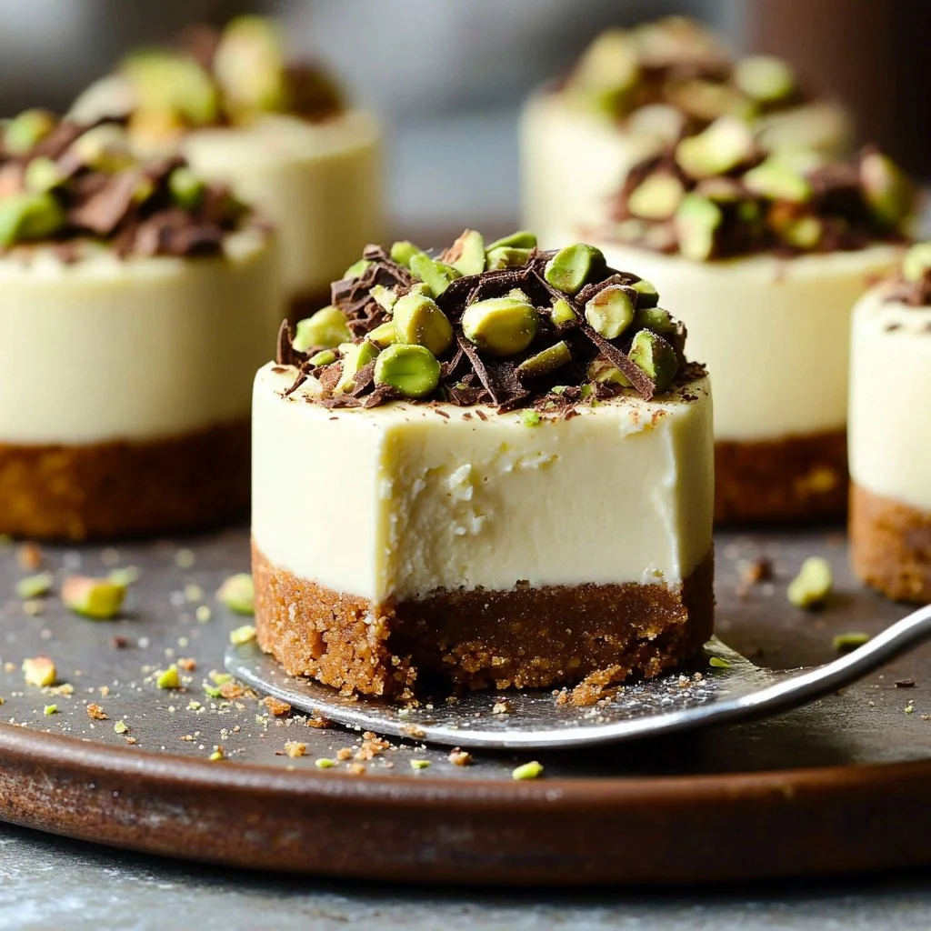 These mini cheesecakes are perfect for family gatherings or weekend treats. They are simple enough to whip up on a busy weekday, saving you time while still delivering that homemade love. The combination of pistachio and coffee strikes a comforting balance that everyone can appreciate. Plus, their small size makes them easy for little hands to enjoy!